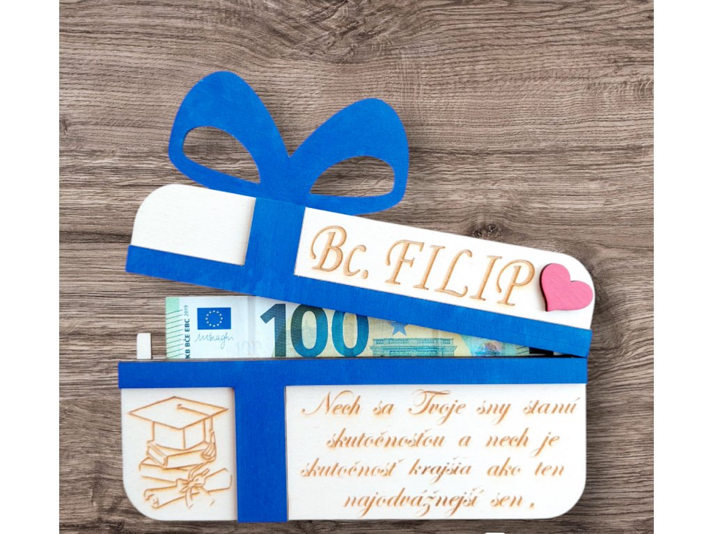 Originálna drevená obálka na peniaze alebo darčekové poukážky, ktorá poteší každého absolventa.