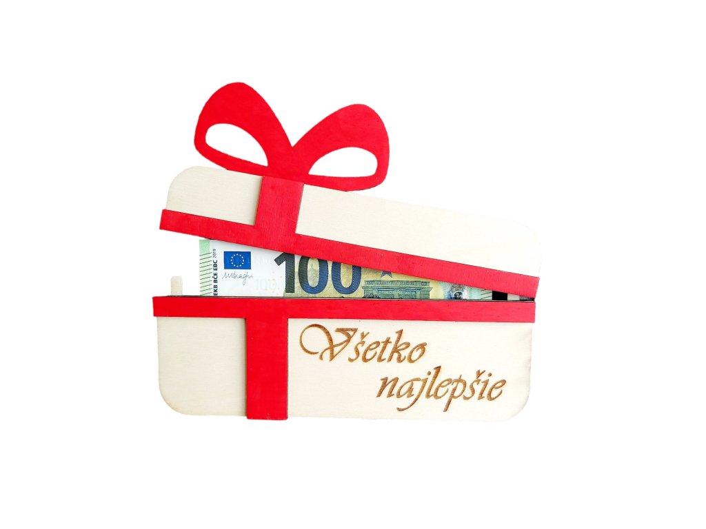 Originálna drevená obálka na peniažky alebo poukážky s textom Všetko najlepšie, bez textu alebo text podľa Vášho želania v elegantnej červenej farbe