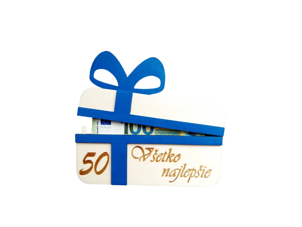 Originálna drevená obálka na peniažky alebo poukážky s textom Všetko najlepšie, bez textu alebo text podľa Vášho želania v modrej farbe