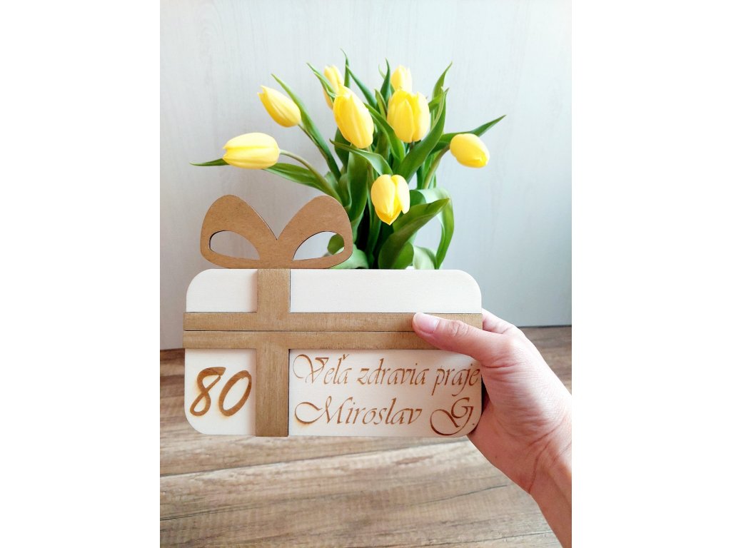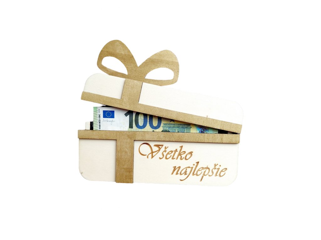 Drevená obálka na peniažky alebo poukážky s nápisom Všetko najlepšie alebo s textom podľa Vášho želania