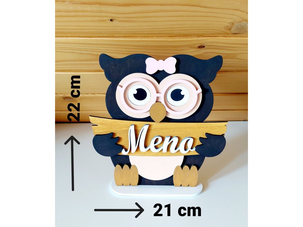 Drevené zvieratko Sovička pre chlapca alebo dievča s menom