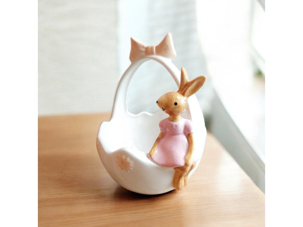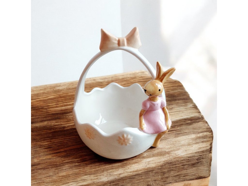 Jemná keramická miska so zajačikom, vhodná ako dekorácia alebo na malé drobnosti, sladkosti, vajíčka.