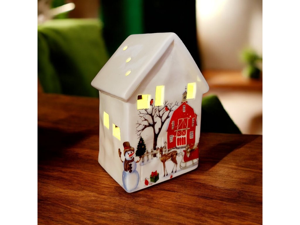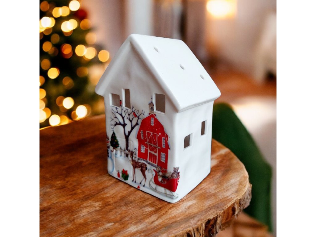 Krásny keramický domček s LED osvetlením s vianočným motívom