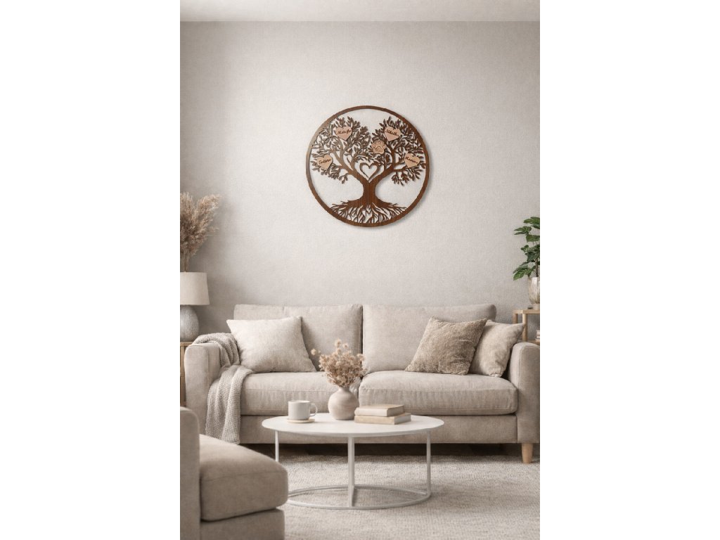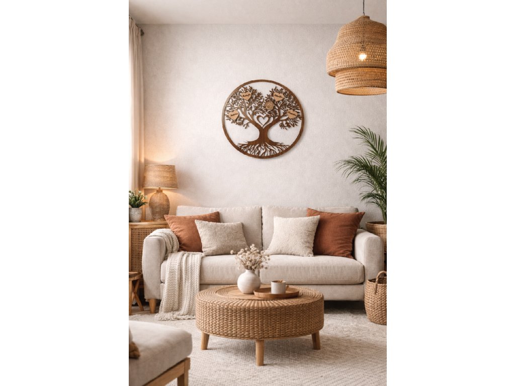 Elegantná drevená dekorácia Strom života s priemerom 50 cm je krásnym a nadčasovým doplnkom do obývačky, spálne, chodby či inej miestnosti.