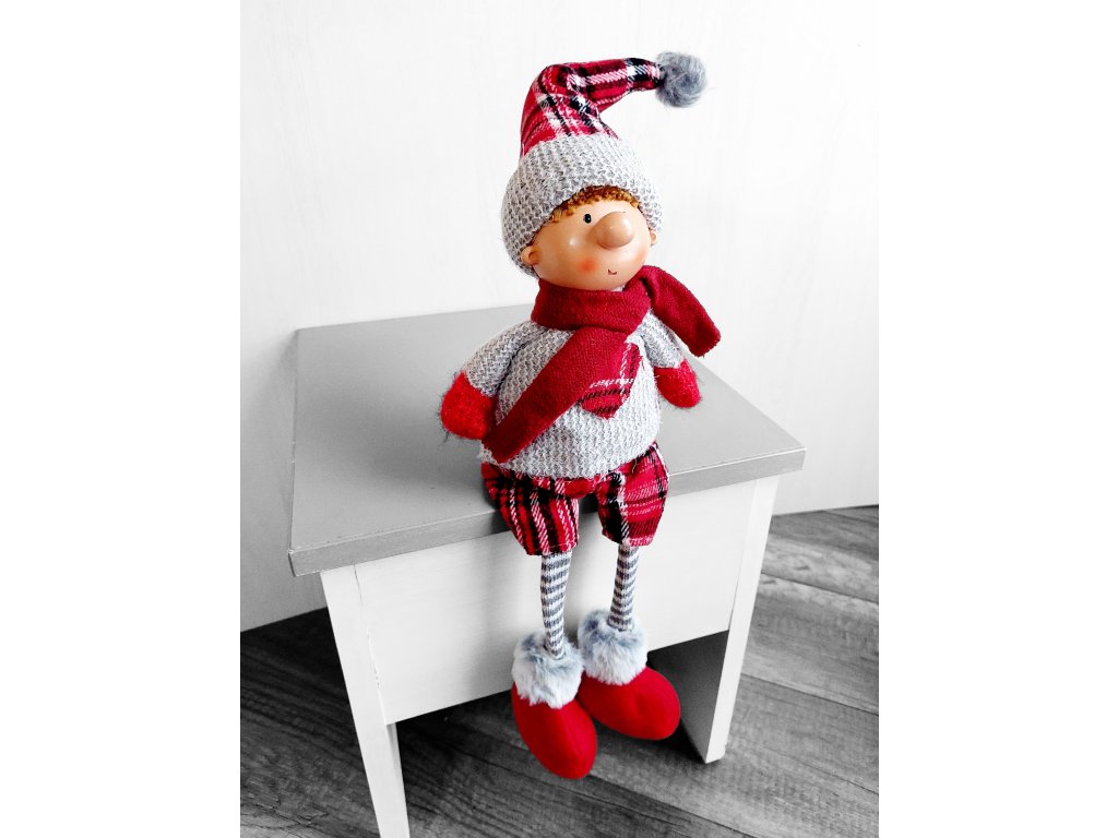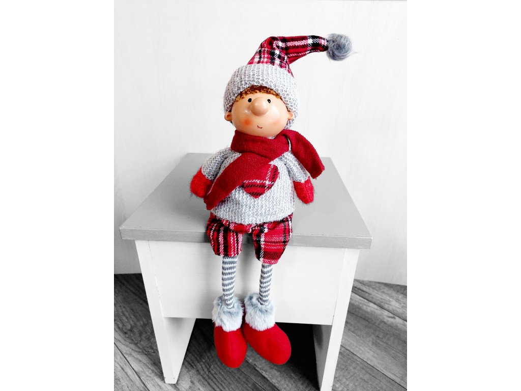 Milá zimná sediaca postavička chlapca, ktorá dodá vášmu domovu útulnú vianočnú atmosféru