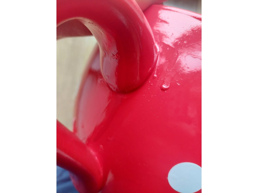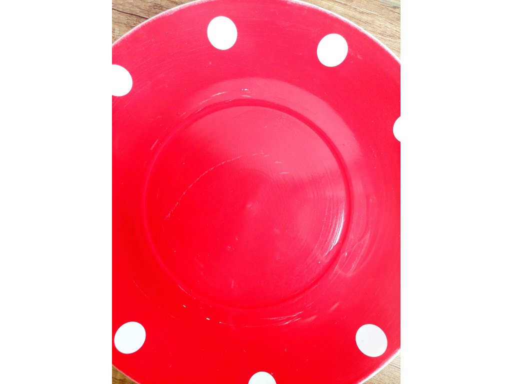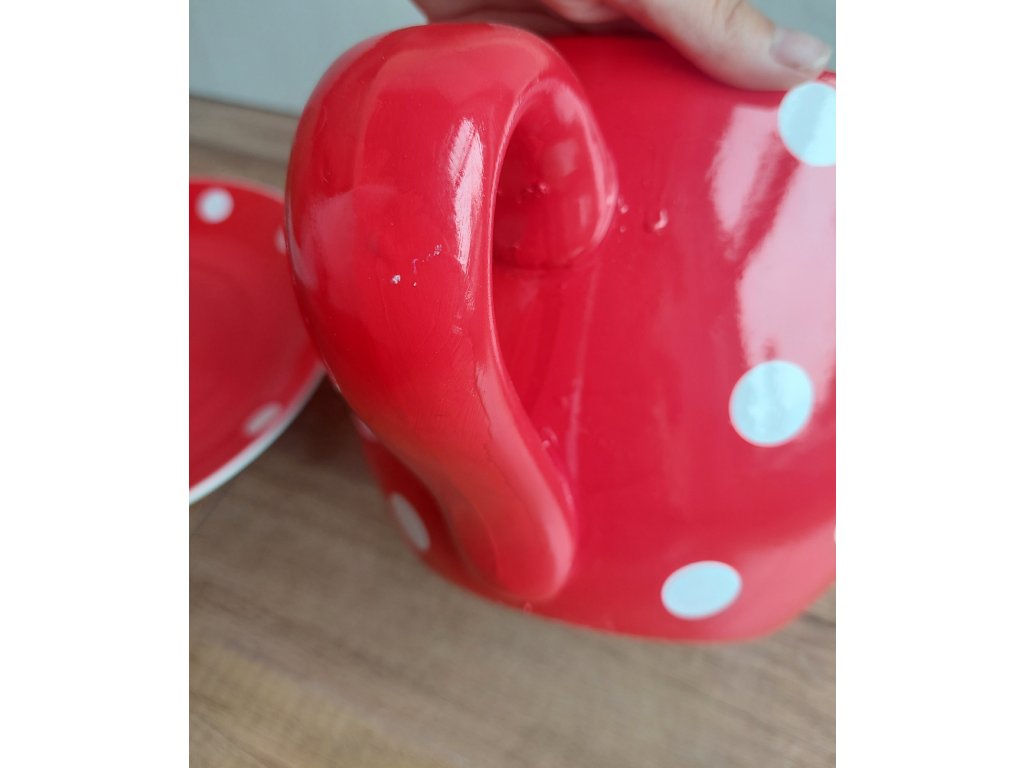 Bodkovaná červená šálka s tanierikom - drobné vizuálne nedostatky
