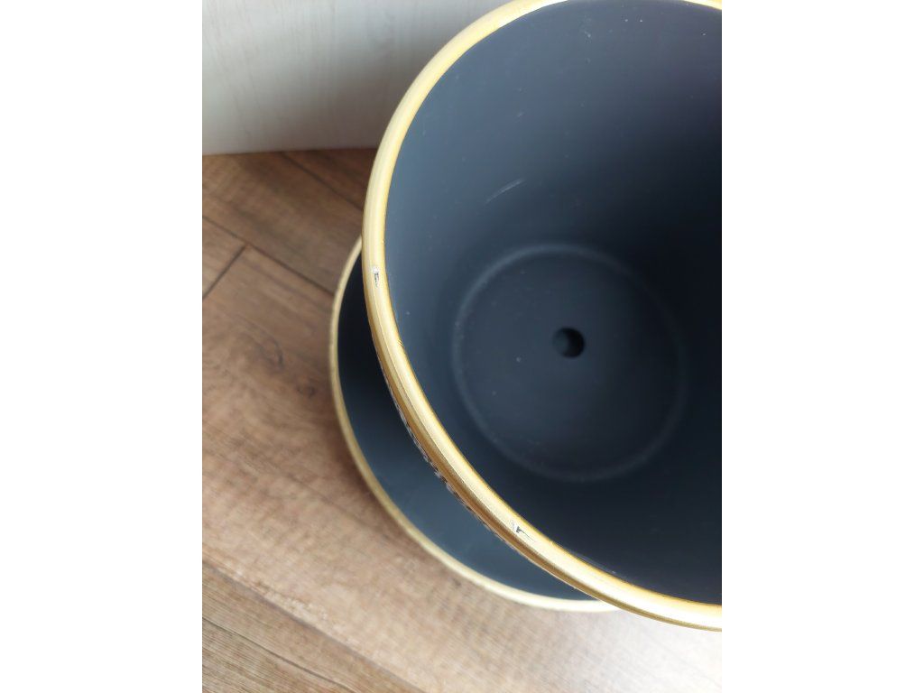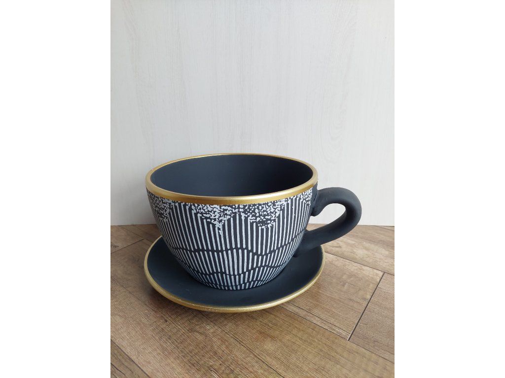Elegantný keramický kvetináč v tvare šálky s tanierikom v modernom čiernom prevedení je štýlovým doplnkom do každého interiéru.