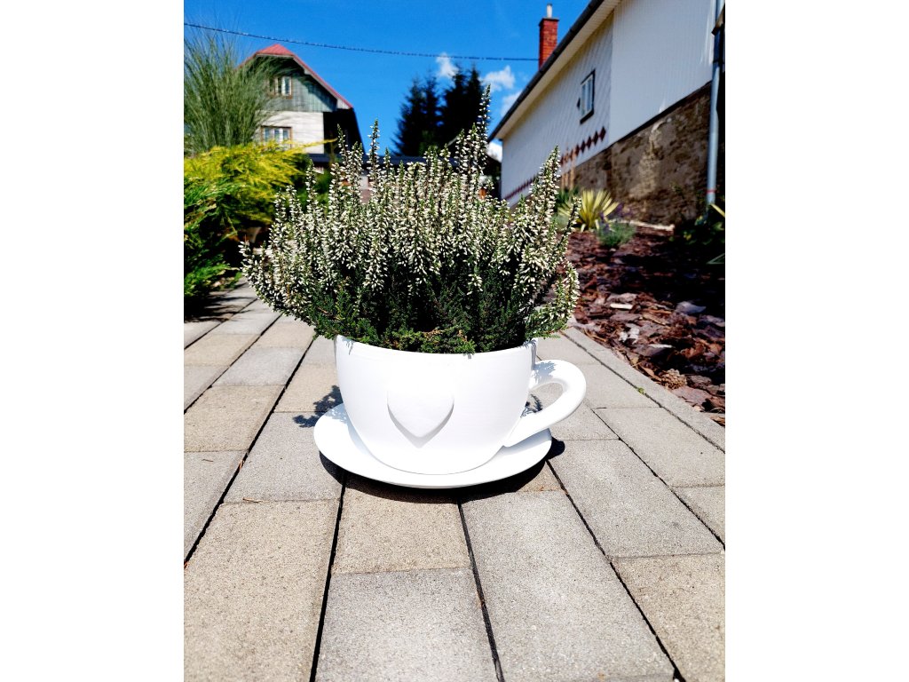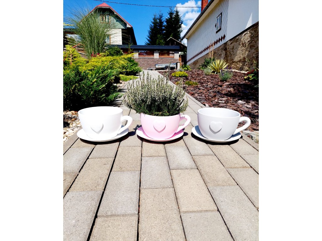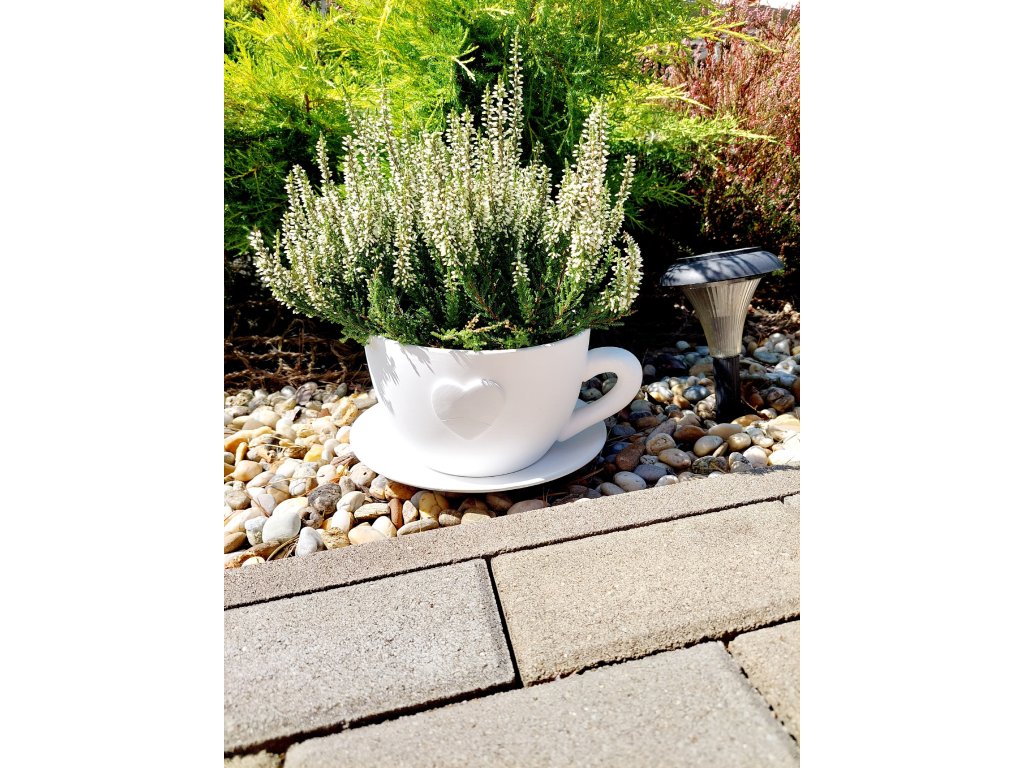 Šálka-kvetináč s jemným srdiečkom na jednej strane prinesie do vášho domova alebo záhrady moderný a elegantný štýl.