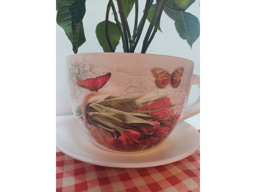 Keramický kvetináč v tvare šálky je originálnym a romantickým doplnkom do interiéru.
